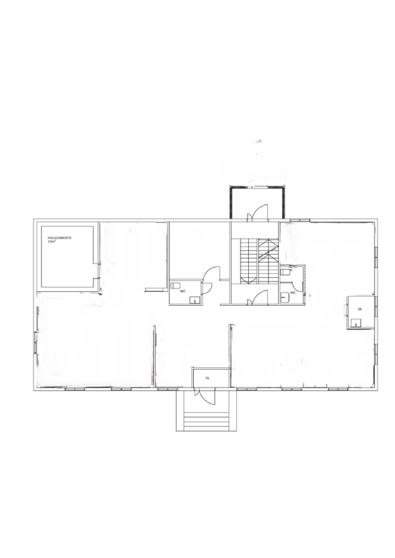 - Juhlatilaan talon ulkopuolella hyvä luiska, yläkertaan portaat